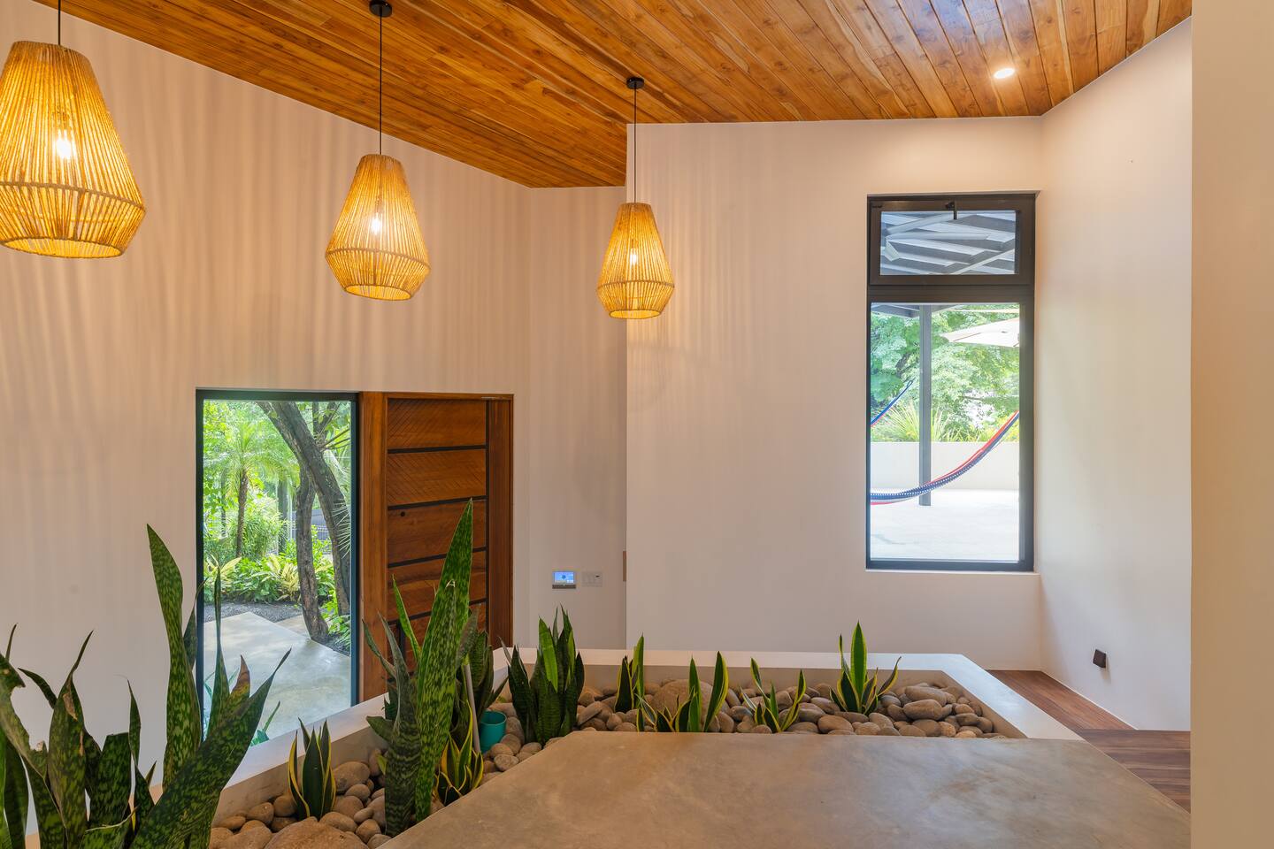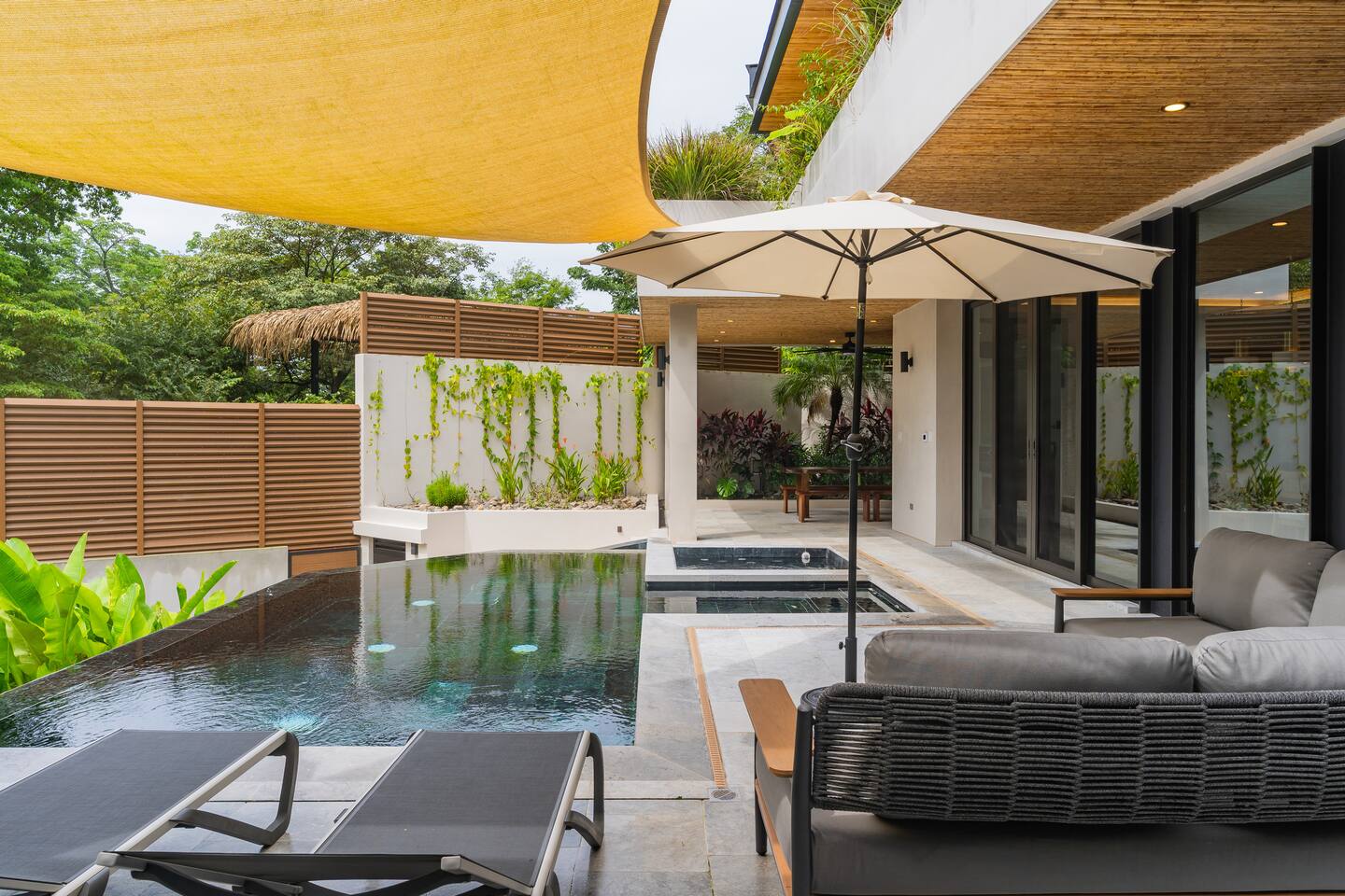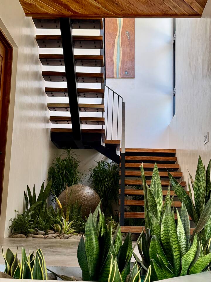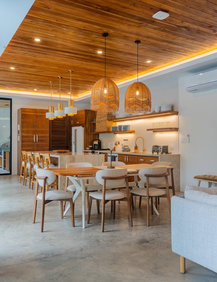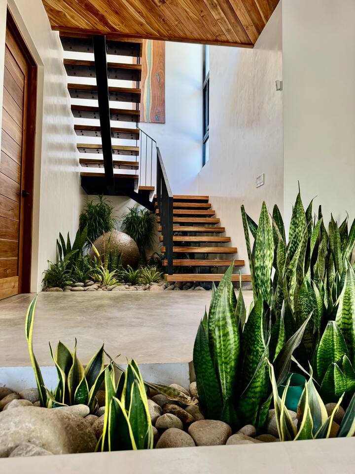 🏡 The Property: Tropical Modern Luxury in Nosara’s Coveted K Section Welcome to your dream getaway in the heart of Playa Guiones! This brand-new 4-bedroom, 4.5-bath tropical modern home is tucked away in the sought-after K Section—where luxury meets pura vida living. Thoughtfully designed for comfort, connection, and style, this spacious oasis blends high-end finishes with a breezy, open-concept layout that invites you to relax and unwind. ✨ The Space The home’s seamless indoor-outdoor living areas open to lush gardens and private spaces to gather after a day of surf or yoga. At the heart of the home is a fully equipped chef’s kitchen featuring top-of-the-line appliances and a large center island—perfect for cooking, entertaining, and connecting with family and friends. Whether you’re hosting a retreat or a casual dinner, this house was designed with larger groups in mind. 🛏 Flexible Bedrooms for Any Group Each of the four bedrooms is a private retreat with its own en-suite bathroom, plush bedding, and thoughtful details. Bedroom 1 and Bedroom 3 offer flexibility for your group—they each have a king bed that can be split into two twin XL beds, ideal for larger groups, families, or wellness retreats. 🌿 Private & Secure The property is surrounded by a secure perimeter wall with an electronic gate and keyless entry, giving you privacy and peace of mind. There’s a private garage with easy access, and the home also features an alarm system. You’ll have exclusive access to the entire property during your stay. 🧘♀️ Perfect for Retreats & Large Gatherings Hosting a bigger group or planning a yoga retreat? This home can be rented alongside Casa Pipeline and Casita Back Door, both just steps away. Casa Pipeline features a stunning ocean-view yoga deck—an incredible spot for sunrise flows, group meditations, or sunset sessions. Together, these properties can comfortably accommodate larger groups looking for the ultimate Nosara experience. 🌴 Location Highlights 7-minute walk to Playa Guiones’ world-class surf and sunsets 5-minute walk to Bodhi Tree Yoga Resort for yoga and wellness Centrally located, yet peaceful and private in the heart of Nosara’s most desirable neighborhood 🌞 Extras You’ll Love High-speed Wi-Fi A/C in every room Outdoor dining and lounge areas Lightweight Turkish towels for the pool and beach Beach chairs & umbrellas provided Complimentary mid-week cleaning Concierge Services Available upon request Friendly local tips on shuttles, ATV rentals, dining, and things to do! Whether you're here for the waves, wellness, or a little of both, this tropical modern home is your ultimate Nosara base. Perfect for families, retreats, and anyone seeking a luxurious escape with the comforts of home.