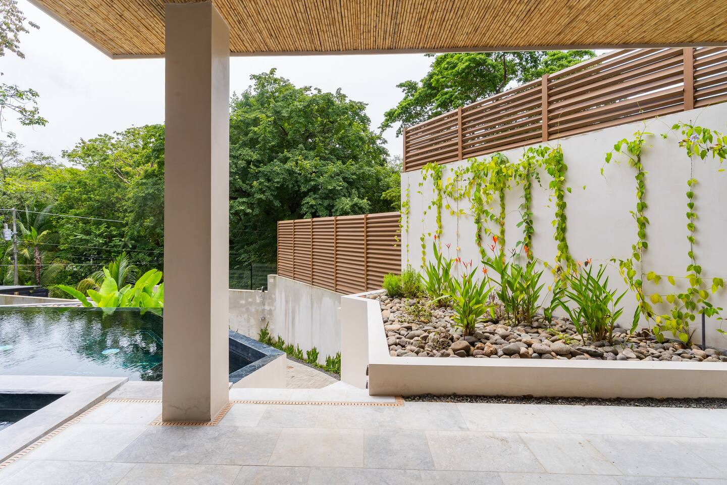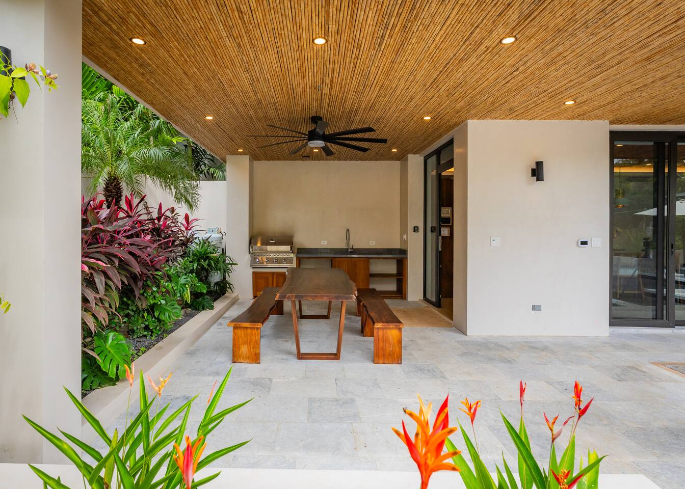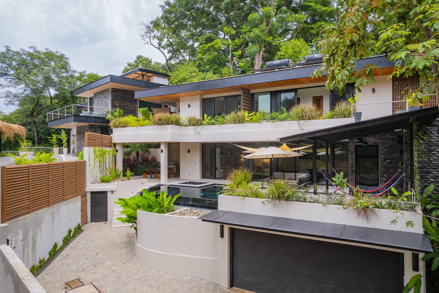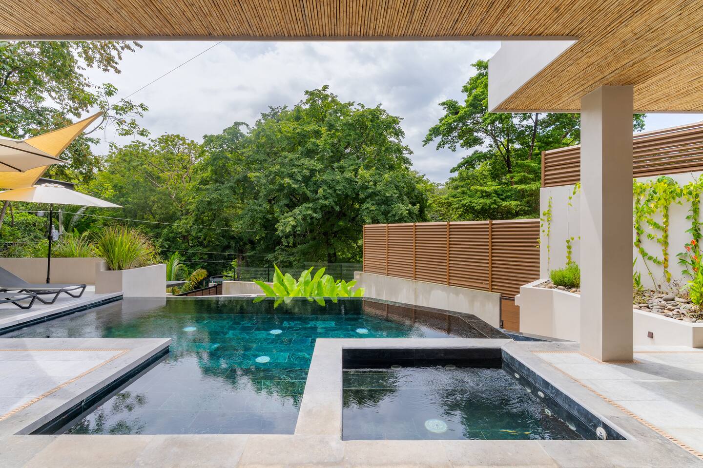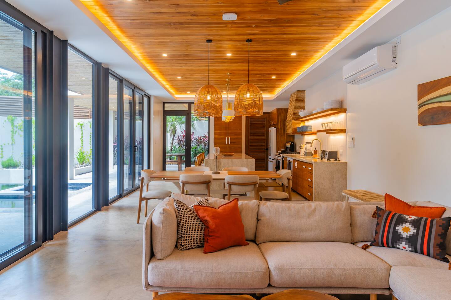 🏡 The Property: Tropical Modern Luxury in Nosara’s Coveted K Section Welcome to your dream getaway in the heart of Playa Guiones! This brand-new 4-bedroom, 4.5-bath tropical modern home is tucked away in the sought-after K Section—where luxury meets pura vida living. Thoughtfully designed for comfort, connection, and style, this spacious oasis blends high-end finishes with a breezy, open-concept layout that invites you to relax and unwind. ✨ The Space The home’s seamless indoor-outdoor living areas open to lush gardens and private spaces to gather after a day of surf or yoga. At the heart of the home is a fully equipped chef’s kitchen featuring top-of-the-line appliances and a large center island—perfect for cooking, entertaining, and connecting with family and friends. Whether you’re hosting a retreat or a casual dinner, this house was designed with larger groups in mind. 🛏 Flexible Bedrooms for Any Group Each of the four bedrooms is a private retreat with its own en-suite bathroom, plush bedding, and thoughtful details. Bedroom 1 and Bedroom 3 offer flexibility for your group—they each have a king bed that can be split into two twin XL beds, ideal for larger groups, families, or wellness retreats. 🌿 Private & Secure The property is surrounded by a secure perimeter wall with an electronic gate and keyless entry, giving you privacy and peace of mind. There’s a private garage with easy access, and the home also features an alarm system. You’ll have exclusive access to the entire property during your stay. 🧘♀️ Perfect for Retreats & Large Gatherings Hosting a bigger group or planning a yoga retreat? This home can be rented alongside Casa Pipeline and Casita Back Door, both just steps away. Casa Pipeline features a stunning ocean-view yoga deck—an incredible spot for sunrise flows, group meditations, or sunset sessions. Together, these properties can comfortably accommodate larger groups looking for the ultimate Nosara experience. 🌴 Location Highlights 7-minute walk to Playa Guiones’ world-class surf and sunsets 5-minute walk to Bodhi Tree Yoga Resort for yoga and wellness Centrally located, yet peaceful and private in the heart of Nosara’s most desirable neighborhood 🌞 Extras You’ll Love High-speed Wi-Fi A/C in every room Outdoor dining and lounge areas Lightweight Turkish towels for the pool and beach Beach chairs & umbrellas provided Complimentary mid-week cleaning Concierge Services Available upon request Friendly local tips on shuttles, ATV rentals, dining, and things to do! Whether you're here for the waves, wellness, or a little of both, this tropical modern home is your ultimate Nosara base. Perfect for families, retreats, and anyone seeking a luxurious escape with the comforts of home.