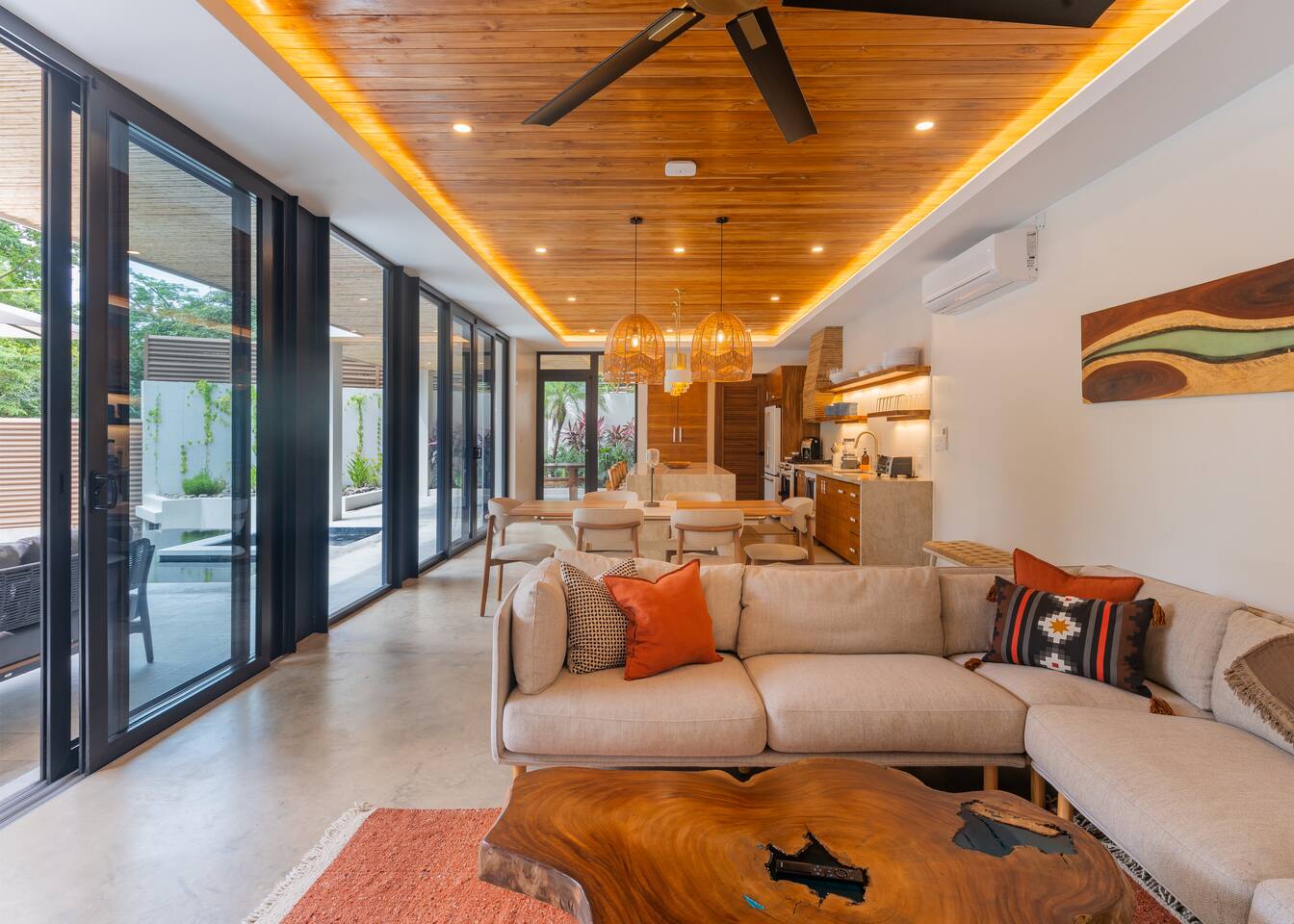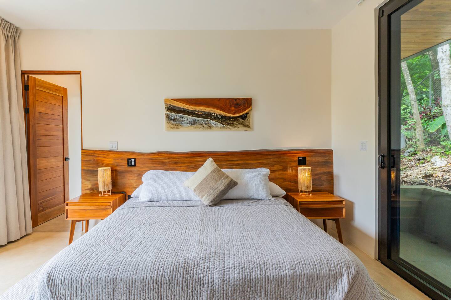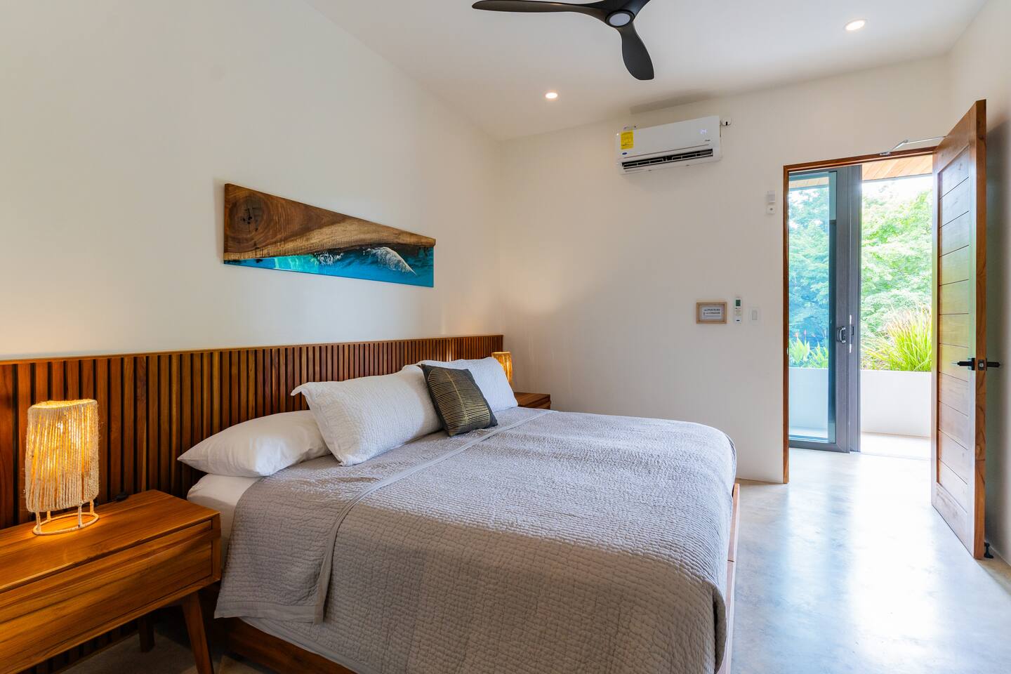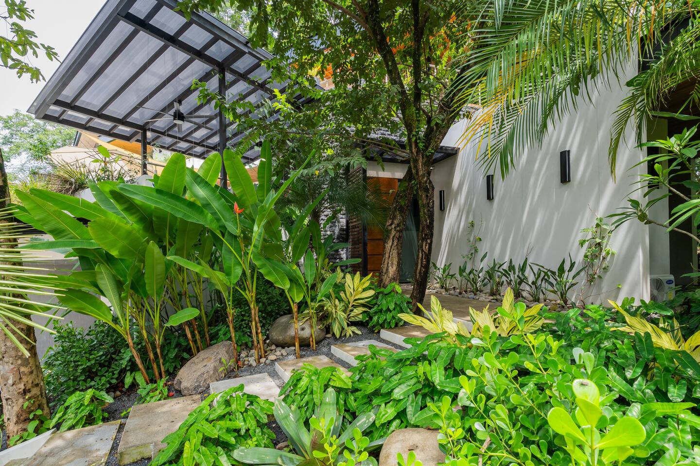 🏡 The Property: Tropical Modern Luxury in Nosara’s Coveted K Section Welcome to your dream getaway in the heart of Playa Guiones! This brand-new 4-bedroom, 4.5-bath tropical modern home is tucked away in the sought-after K Section—where luxury meets pura vida living. Thoughtfully designed for comfort, connection, and style, this spacious oasis blends high-end finishes with a breezy, open-concept layout that invites you to relax and unwind. ✨ The Space The home’s seamless indoor-outdoor living areas open to lush gardens and private spaces to gather after a day of surf or yoga. At the heart of the home is a fully equipped chef’s kitchen featuring top-of-the-line appliances and a large center island—perfect for cooking, entertaining, and connecting with family and friends. Whether you’re hosting a retreat or a casual dinner, this house was designed with larger groups in mind. 🛏 Flexible Bedrooms for Any Group Each of the four bedrooms is a private retreat with its own en-suite bathroom, plush bedding, and thoughtful details. Bedroom 1 and Bedroom 3 offer flexibility for your group—they each have a king bed that can be split into two twin XL beds, ideal for larger groups, families, or wellness retreats. 🌿 Private & Secure The property is surrounded by a secure perimeter wall with an electronic gate and keyless entry, giving you privacy and peace of mind. There’s a private garage with easy access, and the home also features an alarm system. You’ll have exclusive access to the entire property during your stay. 🧘♀️ Perfect for Retreats & Large Gatherings Hosting a bigger group or planning a yoga retreat? This home can be rented alongside Casa Pipeline and Casita Back Door, both just steps away. Casa Pipeline features a stunning ocean-view yoga deck—an incredible spot for sunrise flows, group meditations, or sunset sessions. Together, these properties can comfortably accommodate larger groups looking for the ultimate Nosara experience. 🌴 Location Highlights 7-minute walk to Playa Guiones’ world-class surf and sunsets 5-minute walk to Bodhi Tree Yoga Resort for yoga and wellness Centrally located, yet peaceful and private in the heart of Nosara’s most desirable neighborhood 🌞 Extras You’ll Love High-speed Wi-Fi A/C in every room Outdoor dining and lounge areas Lightweight Turkish towels for the pool and beach Beach chairs & umbrellas provided Complimentary mid-week cleaning Concierge Services Available upon request Friendly local tips on shuttles, ATV rentals, dining, and things to do! Whether you're here for the waves, wellness, or a little of both, this tropical modern home is your ultimate Nosara base. Perfect for families, retreats, and anyone seeking a luxurious escape with the comforts of home.