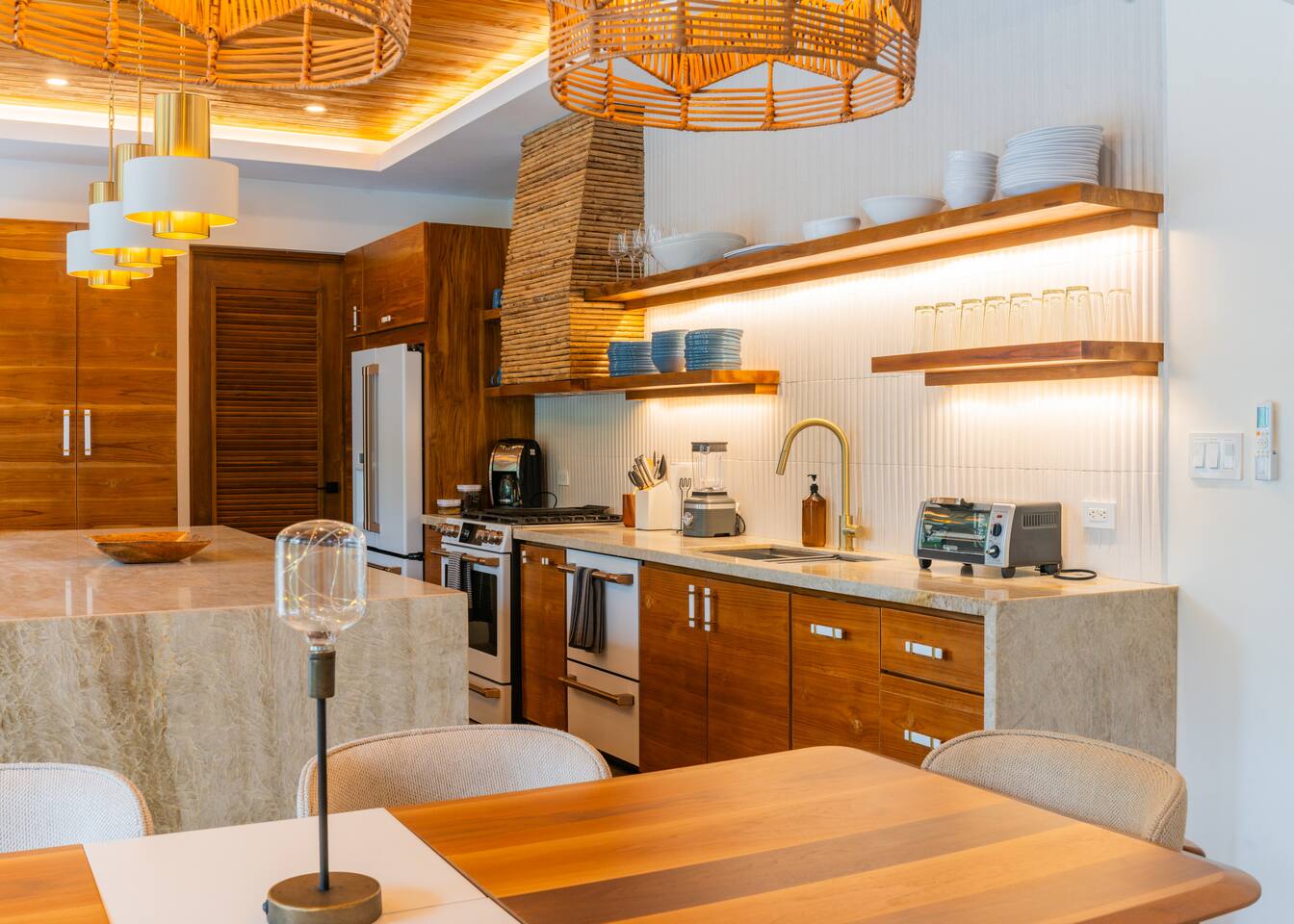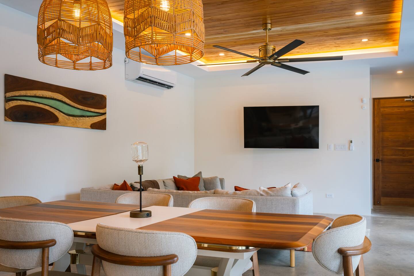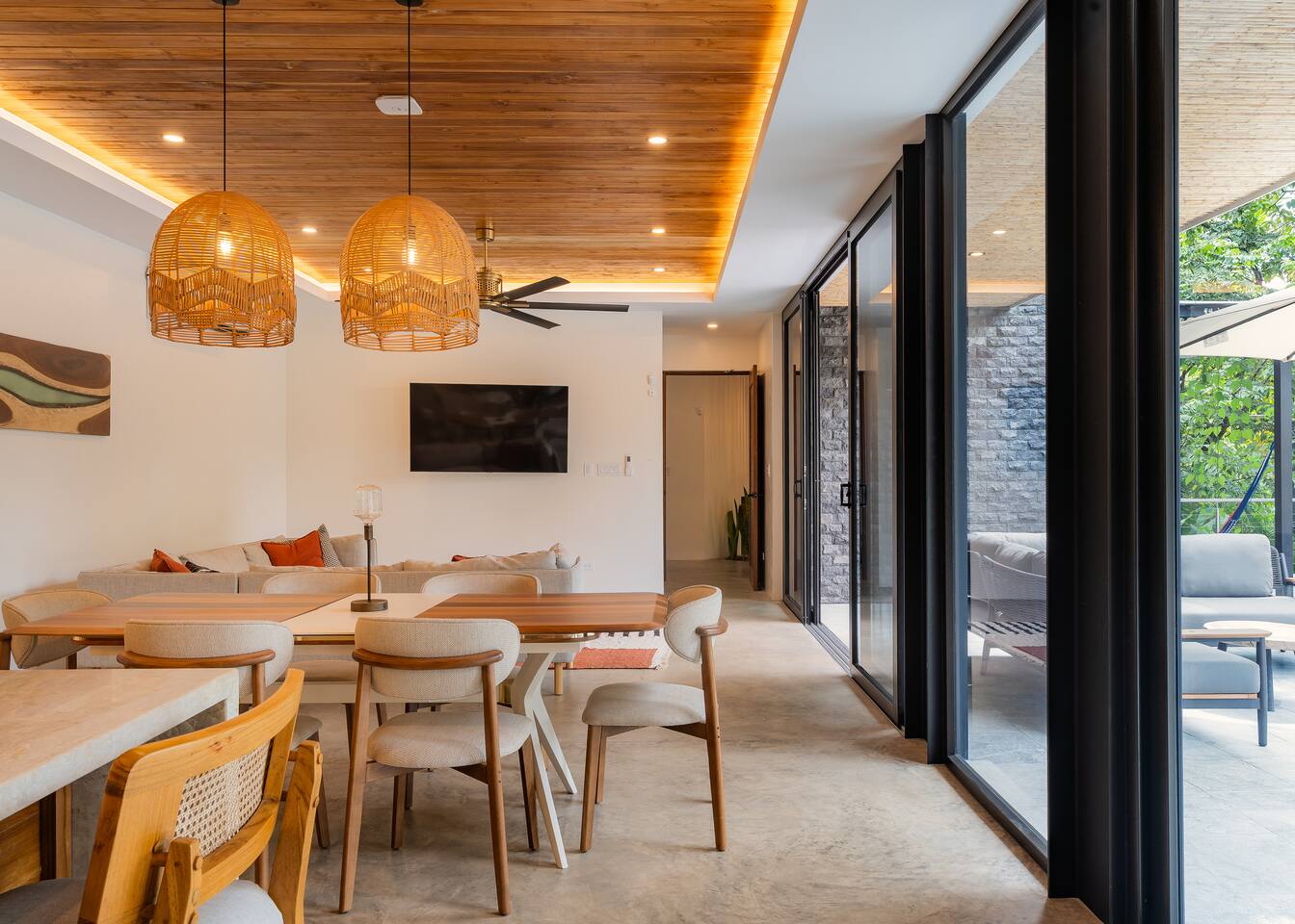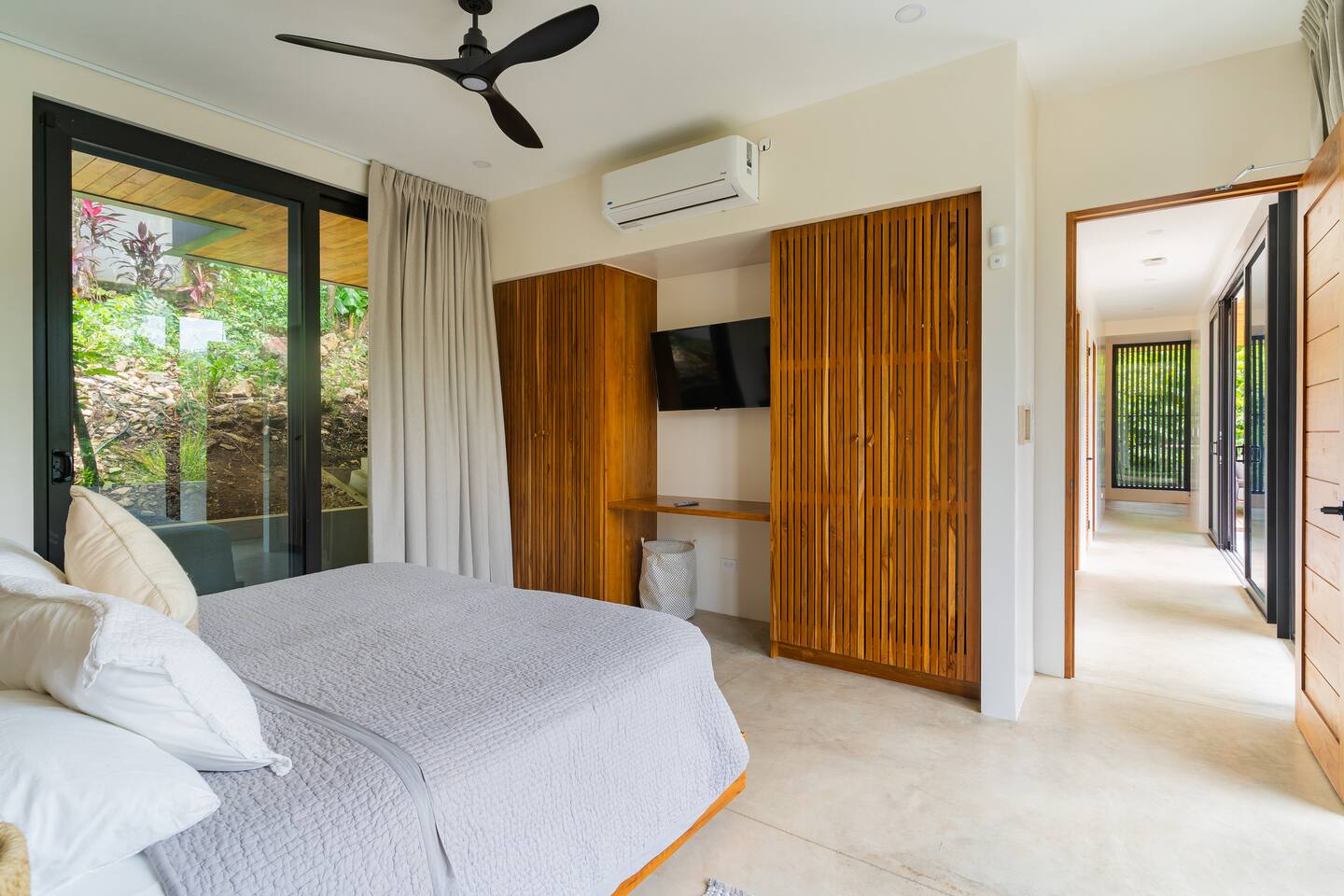 🏡 The Property: Tropical Modern Luxury in Nosara’s Coveted K Section Welcome to your dream getaway in the heart of Playa Guiones! This brand-new 4-bedroom, 4.5-bath tropical modern home is tucked away in the sought-after K Section—where luxury meets pura vida living. Thoughtfully designed for comfort, connection, and style, this spacious oasis blends high-end finishes with a breezy, open-concept layout that invites you to relax and unwind. ✨ The Space The home’s seamless indoor-outdoor living areas open to lush gardens and private spaces to gather after a day of surf or yoga. At the heart of the home is a fully equipped chef’s kitchen featuring top-of-the-line appliances and a large center island—perfect for cooking, entertaining, and connecting with family and friends. Whether you’re hosting a retreat or a casual dinner, this house was designed with larger groups in mind. 🛏 Flexible Bedrooms for Any Group Each of the four bedrooms is a private retreat with its own en-suite bathroom, plush bedding, and thoughtful details. Bedroom 1 and Bedroom 3 offer flexibility for your group—they each have a king bed that can be split into two twin XL beds, ideal for larger groups, families, or wellness retreats. 🌿 Private & Secure The property is surrounded by a secure perimeter wall with an electronic gate and keyless entry, giving you privacy and peace of mind. There’s a private garage with easy access, and the home also features an alarm system. You’ll have exclusive access to the entire property during your stay. 🧘♀️ Perfect for Retreats & Large Gatherings Hosting a bigger group or planning a yoga retreat? This home can be rented alongside Casa Pipeline and Casita Back Door, both just steps away. Casa Pipeline features a stunning ocean-view yoga deck—an incredible spot for sunrise flows, group meditations, or sunset sessions. Together, these properties can comfortably accommodate larger groups looking for the ultimate Nosara experience. 🌴 Location Highlights 7-minute walk to Playa Guiones’ world-class surf and sunsets 5-minute walk to Bodhi Tree Yoga Resort for yoga and wellness Centrally located, yet peaceful and private in the heart of Nosara’s most desirable neighborhood 🌞 Extras You’ll Love High-speed Wi-Fi A/C in every room Outdoor dining and lounge areas Lightweight Turkish towels for the pool and beach Beach chairs & umbrellas provided Complimentary mid-week cleaning Concierge Services Available upon request Friendly local tips on shuttles, ATV rentals, dining, and things to do! Whether you're here for the waves, wellness, or a little of both, this tropical modern home is your ultimate Nosara base. Perfect for families, retreats, and anyone seeking a luxurious escape with the comforts of home.