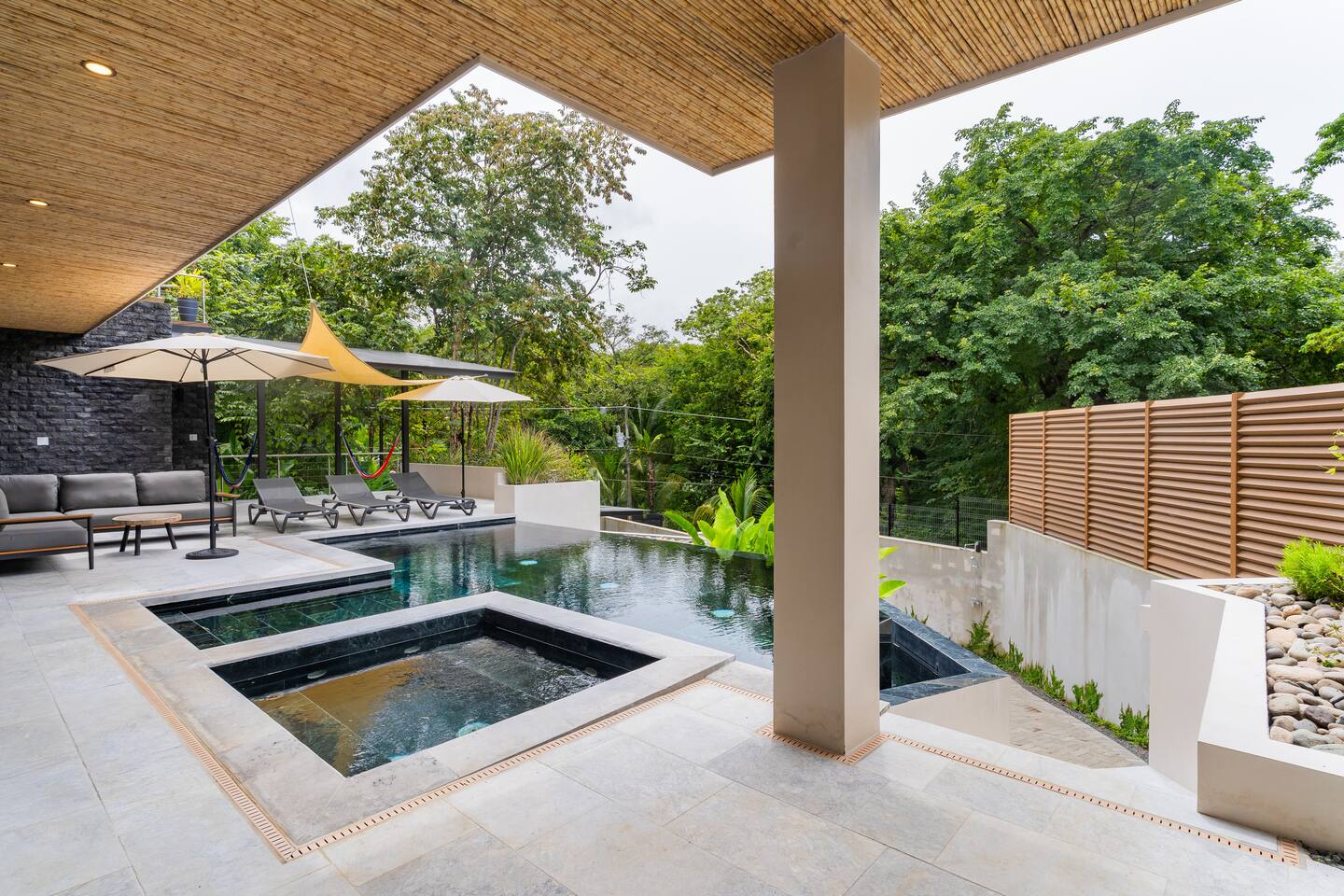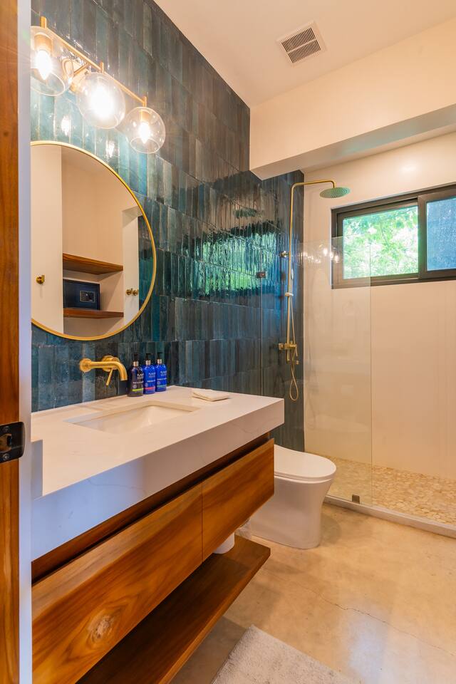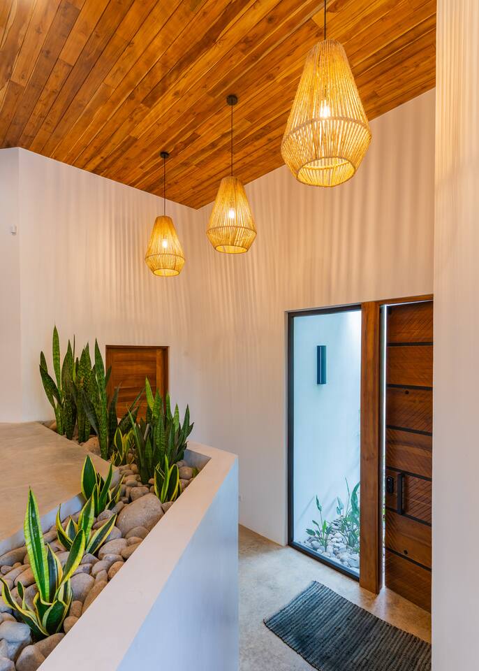 Use the house at your own risk. Please be mindful of your safety and your group’s safety. Pool Safety • No jumping or diving from the 2nd-floor balcony into the pool (strictly prohibited). • Pool use is at your own risk. Children must be supervised at all times. Security • Please set the alarm whenever you leave the house and before going to sleep at night. • Use bedroom safes for valuables such as passports, electronics, and cash. Events & Gatherings • No parties or events unless pre-approved by the host. Smoking • No smoking indoors. • Do not smoke near outdoor furniture. Damage from burns will be charged to the guest. Water Conservation • Water is scarce in Nosara and the local ASADA may shut it off during the dry season to conserve supply. Please take quick showers and help conserve water during your stay. All guests must provide full names and ages prior to check-in. This is a brand new, high-end property, and we kindly ask that you treat it with the same care and respect you would your own home. We’ve put a lot of thought and love into creating a comfortable space and appreciate your help in keeping it in excellent condition for future guests! Pura Vida