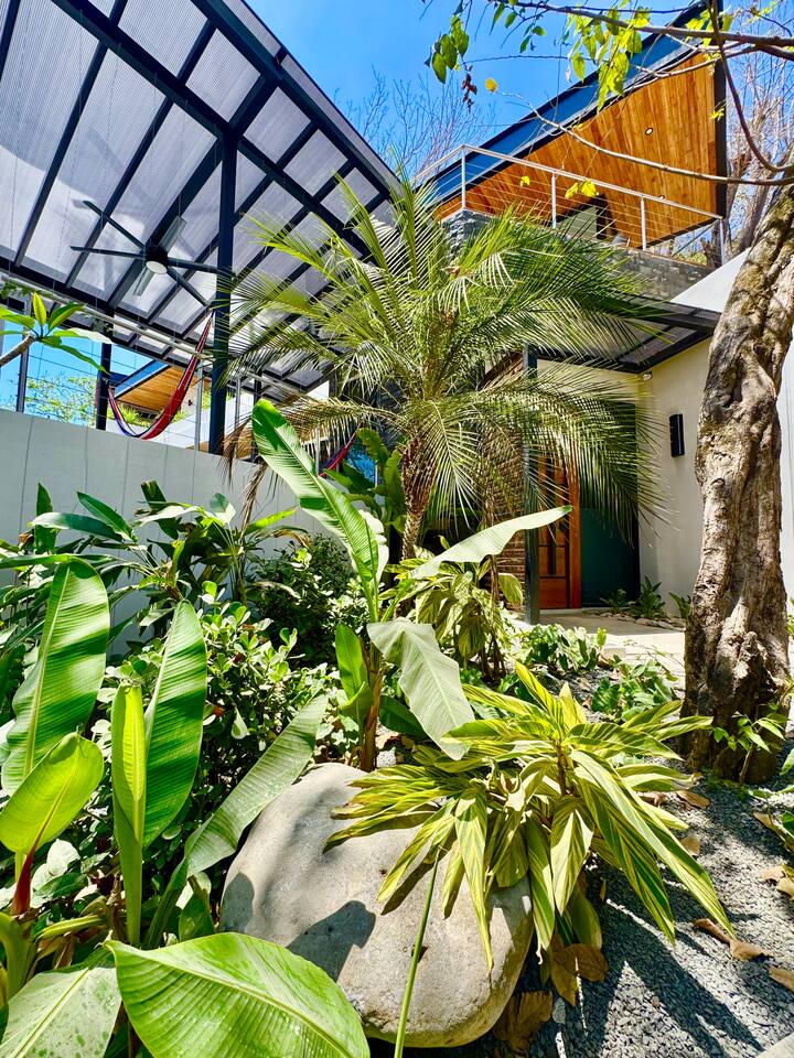 Experience luxury in Nosara’s coveted K Section! This brand-new tropical modern 4BR/4.5BA home is a 7-min walk to Playa Guiones and 5 mins to Bodhi Tree Yoga Resort. Ideal for families or groups, it features designer finishes, a chef’s kitchen, spacious indoor-outdoor living, private saltwater pool and Jacuzzi, A/C, fast Wi-Fi, and lush gardens. Enjoy serenity, comfort, and convenience—your dream surf and yoga retreat awaits!
