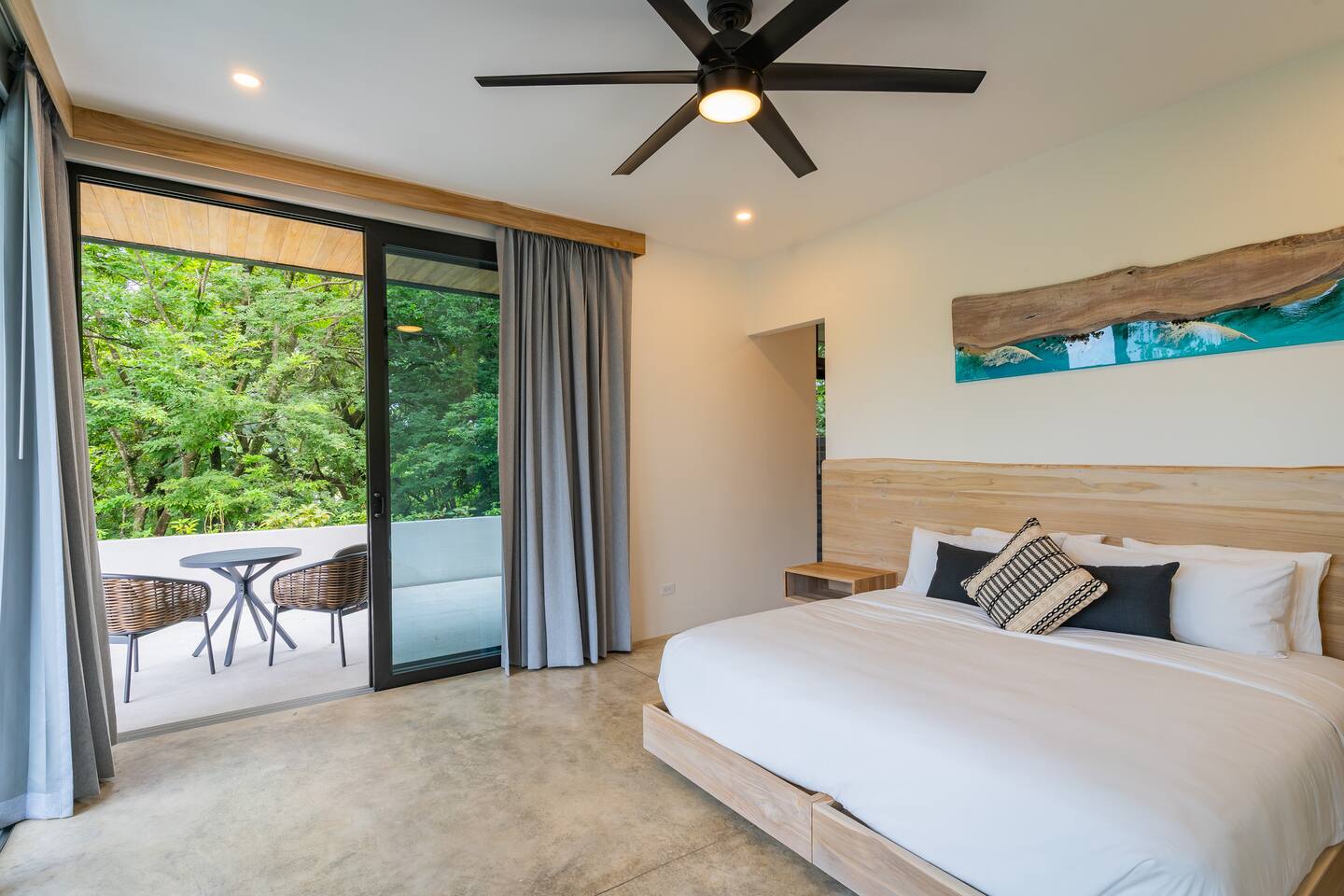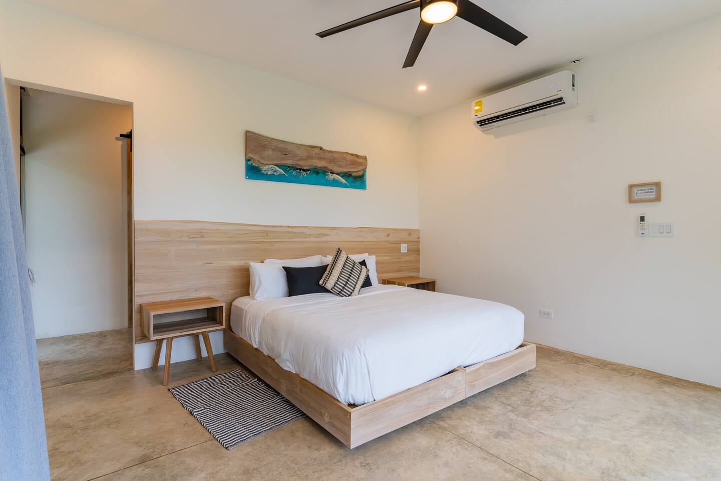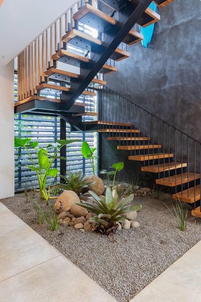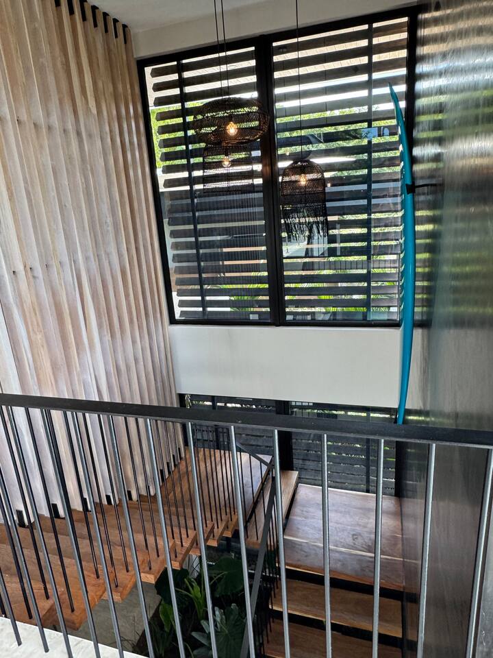 Most guests explore Playa Guiones on foot, by golf cart, ATV, or taxi/tuk-tuk. From Casa Pipeline, it’s just a 7-minute walk to the beach, yoga, restaurants, and shops. For exploring nearby beaches or attractions, we recommend a rental car — secure parking is available in the two-car garage.