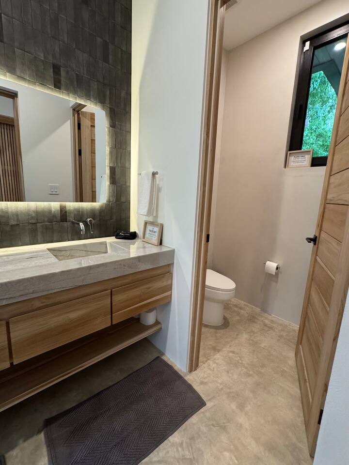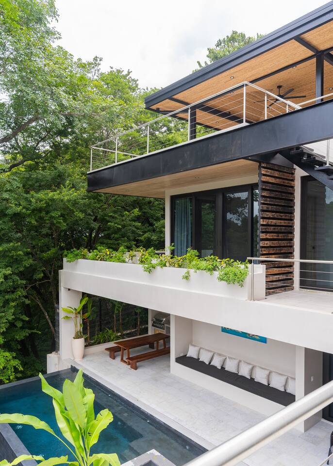 Use the house at your own risk. Please be mindful of your safety and your group’s safety. Pool Safety • No jumping or diving from the 2nd-floor balcony into the pool (strictly prohibited). • Pool use is at your own risk. Children must be supervised at all times. Security • Please set the alarm whenever you leave the house and before going to sleep at night. • Use bedroom safes for valuables such as passports, electronics, and cash. Events & Gatherings • No parties or events unless pre-approved by the host. Smoking • No smoking indoors. • Do not smoke near outdoor furniture. Damage from burns will be charged to the guest. Water Conservation • Water is scarce in Nosara and the local ASADA may shut it off during the dry season to conserve supply. Please take quick showers and help conserve water during your stay. All guests must provide full names and ages prior to check-in. This is a brand new, high-end property, and we kindly ask that you treat it with the same care and respect you would your own home. We’ve put a lot of thought and love into creating a comfortable space and appreciate your help in keeping it in excellent condition for future guests! Pura Vida