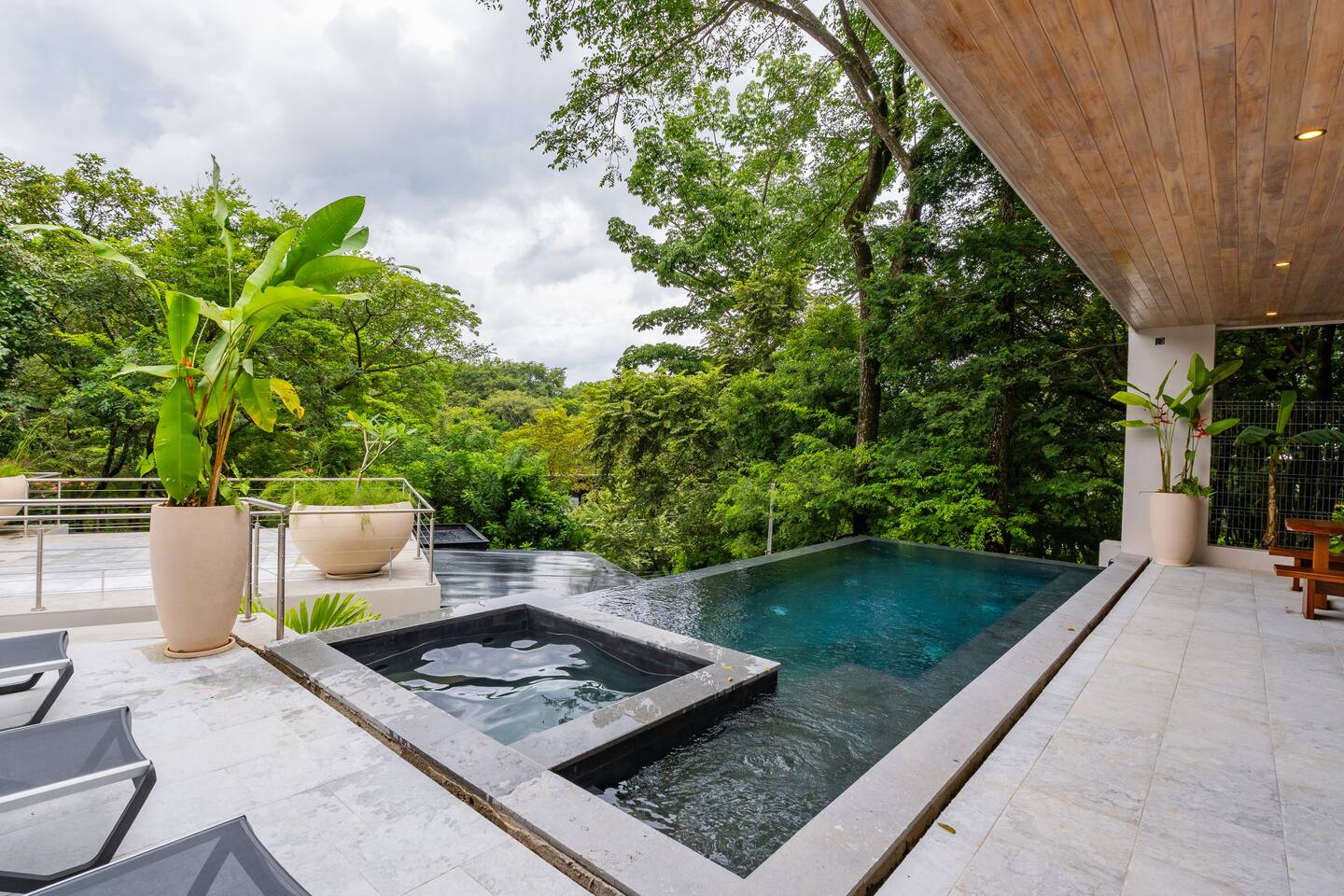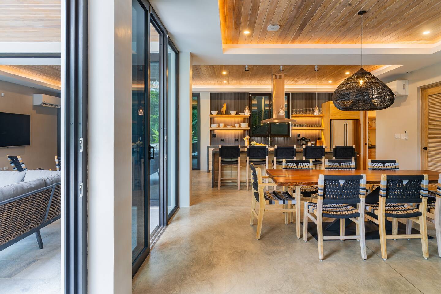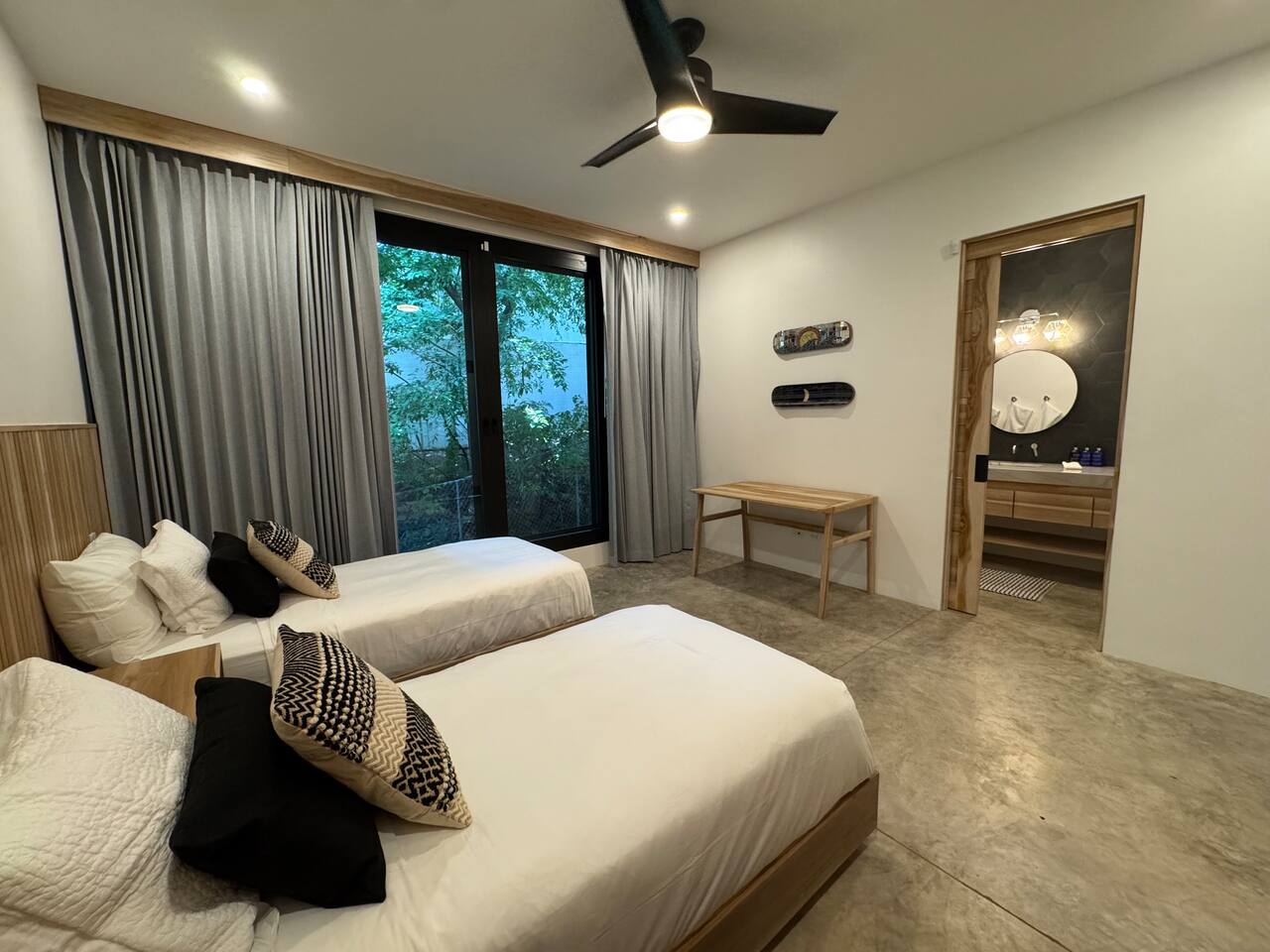 About this space Experience luxury and privacy in Nosara’s coveted K Section! Casa Pipeline & Casita Backdoor are brand-new tropical modern homes named after the legendary waves of Hawaii’s North Shore—Pipeline and Backdoor. Like the waves themselves, the design is intense yet beautiful, blending bold architecture with serene tropical living. Perched on a hill above the road, you’ll enjoy close-up monkey views and total privacy, just a 7-min walk to Playa Guiones and 5 minutes to Bodhi Tree Yoga Resort. With 6 bedrooms and 2 sofa beds, this property is perfect for families, groups, or retreats. Enjoy a chef’s kitchen, designer finishes, indoor-outdoor living, a private pool and jacuzzi, lush gardens, A/C, fast WiFi, and eco-conscious details. The perfect blend of luxury, surf culture, and pura vida living awaits. 🏡 The Property: Tropical Modern Luxury in Nosara’s K Section Casa Pipeline & Casita Backdoor were thoughtfully designed for comfort, connection, and style. Multiple levels and hangout spaces give guests plenty of room to spread out while still staying connected. Highlights include: *Chef’s kitchen with GE Monogram + GE Café appliances *Dining for 20, indoors and out *Indoor-outdoor living areas that flow to terraces, gardens, and pool *Private yoga deck for 20 with Manduka mats and props *Pool & jacuzzi terrace with built-in BBQ grill and outdoor dining *Rancho with hammocks, sofa, and palm roof for ultimate relaxation 🛏 Bedrooms & Sleeping Options Casa Pipeline (4BR / 4.5BA): * 4 spacious bedrooms, each with en-suite bathrooms, closets, and A/C * 2 of these are Master suites with either a king bed or two twin XLs, plus a private balcony, outdoor shower, and jungle views * Additional bedroom also offer flexible setup: king or twin XLs—great for retreats or families * Bunk Room with 2 queen lower beds and twin upper bunks and en-suite has a tub! * Second-floor lounge includes a queen sofa bed for extra sleeping space Casita Back Door (2BR / 1BA): Primary bedroom with a king bed or two twin XLs Second bedroom with a full bed and a twin bunk above—ideal for kids or additional guests Living room includes a queen sofa bed for added flexibility A/C throughout, plus surfboard storage and an outdoor shower Altogether the property sleeps groups comfortably, with versatile arrangements ideal for families or retreats. 🌿 Eco-Luxury & Comfort Both homes are non-toxic and eco-conscious, featuring organic sheets, bio-friendly cleaning products, and Raw Botanicals organic bath amenities. Practical comforts include a battery backup system for Nosara’s frequent power outages, alarm system, and a gated wall surrounding the property for safety and peace of mind. 🧘 Perfect for Retreats & Large Gatherings With a private yoga deck, chef’s kitchen, spacious dining, and flexible sleeping arrangements, Casa Pipeline & Casita Backdoor are ideal for wellness retreats, surf trips, and family gatherings. If you need even more space, Casa Rocky Point (4BR/4.5BA, sleeps 12) can be rented alongside, creating a full retreat compound. 🌴 Location Highlights *7-minute walk to Playa Guiones surf, yoga studios, shops, and dining *5-minute walk to Bodhi Tree Yoga Resort *Located in Nosara’s most desirable neighborhood, the K Section—central yet private 🌞 Extras You’ll Love *High-speed WiFi + A/C in every room *Outdoor dining, patios, balconies, hammocks, and lounge areas *Surfboard rack + outdoor showers for post-beach rinse-offs *Beach towels, chairs, and umbrellas provided *Complimentary mid-week cleaning *Concierge services available (airport transfers, private chefs, yoga, surf lessons, tours, spa services, ATV rentals, and more)