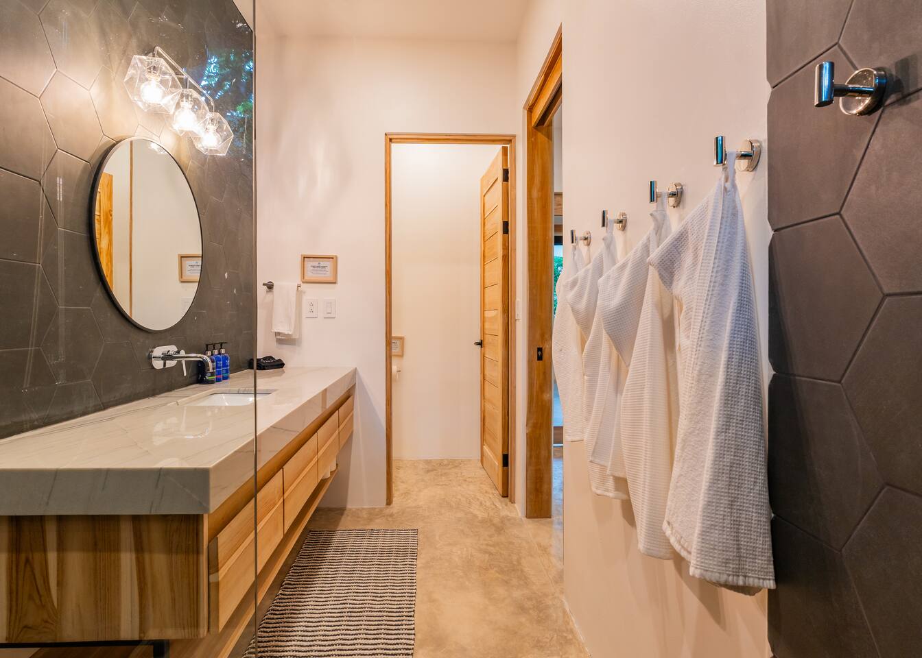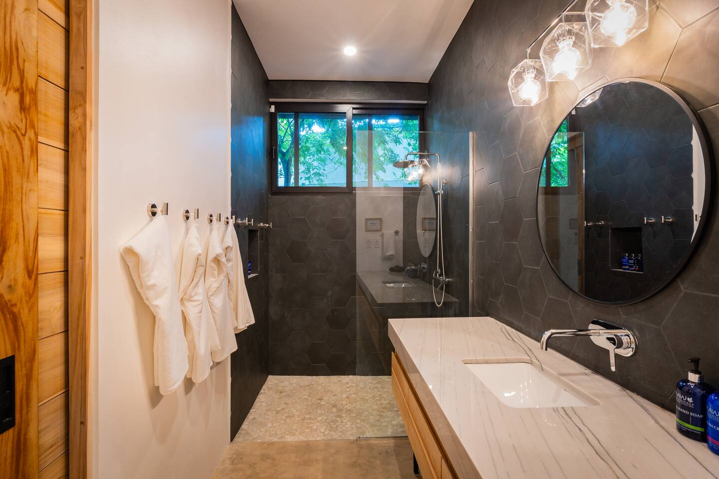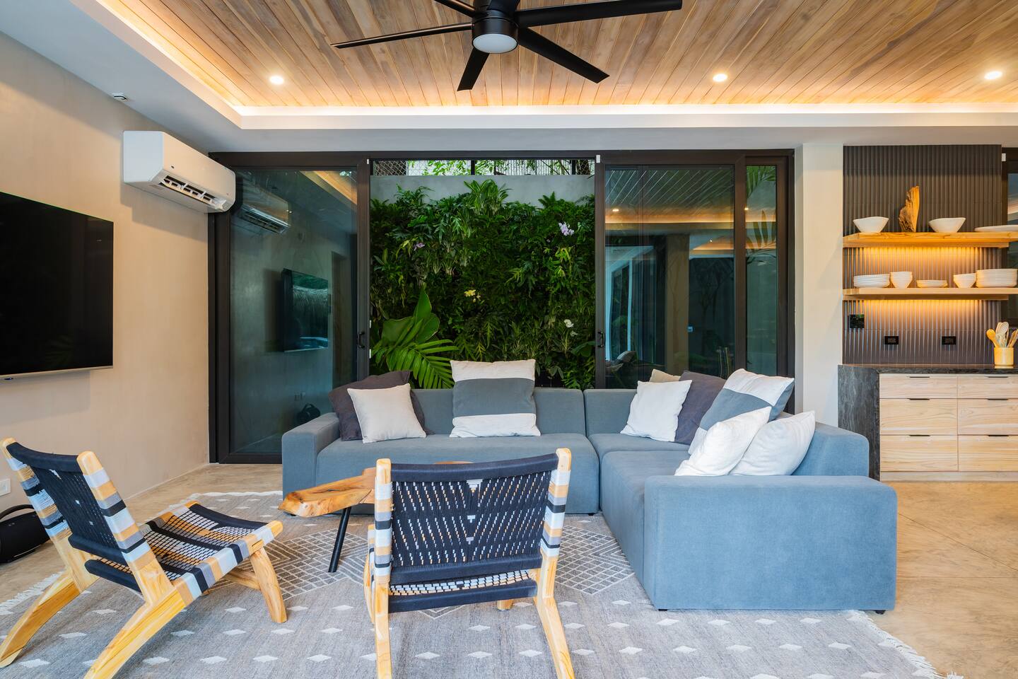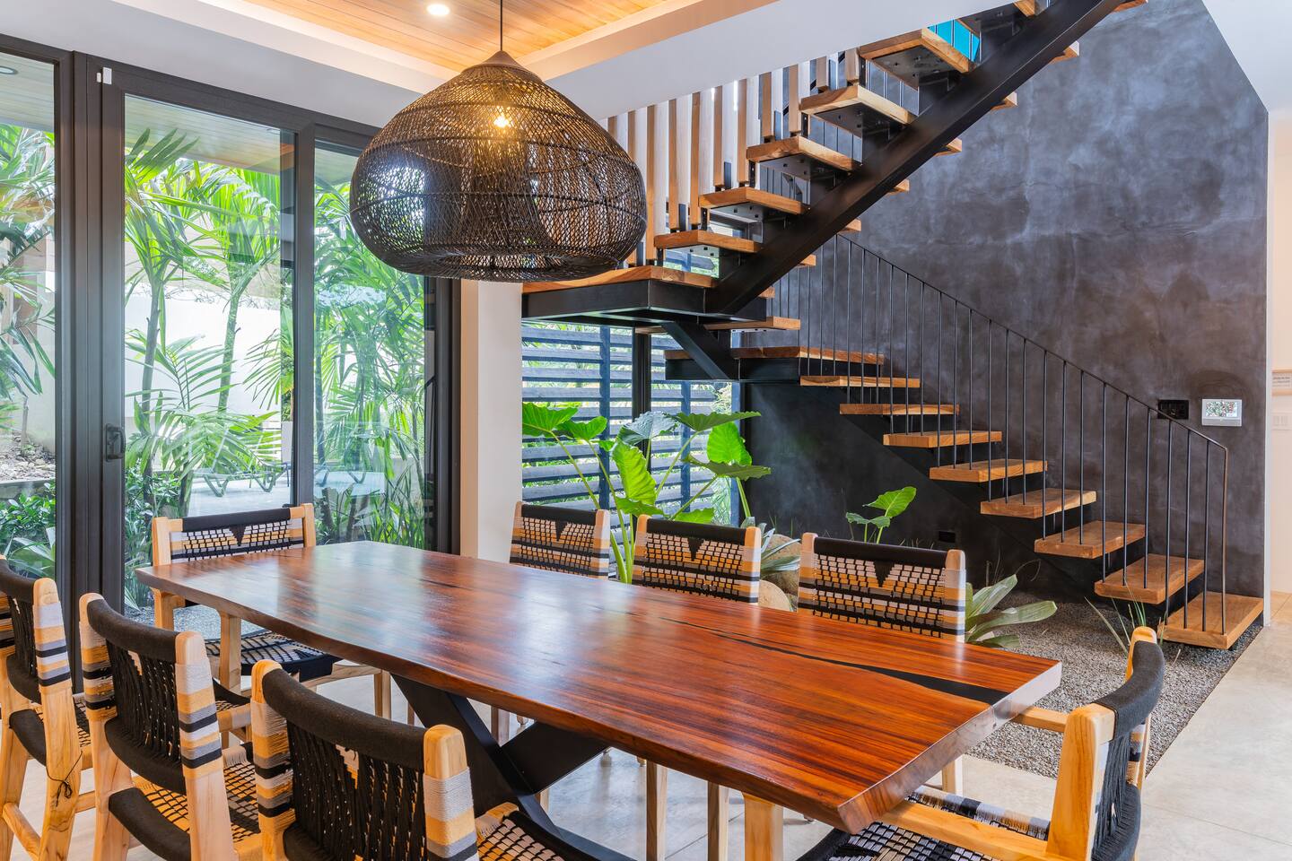 About this space Experience luxury and privacy in Nosara’s coveted K Section! Casa Pipeline & Casita Backdoor are brand-new tropical modern homes named after the legendary waves of Hawaii’s North Shore—Pipeline and Backdoor. Like the waves themselves, the design is intense yet beautiful, blending bold architecture with serene tropical living. Perched on a hill above the road, you’ll enjoy close-up monkey views and total privacy, just a 7-min walk to Playa Guiones and 5 minutes to Bodhi Tree Yoga Resort. With 6 bedrooms and 2 sofa beds, this property is perfect for families, groups, or retreats. Enjoy a chef’s kitchen, designer finishes, indoor-outdoor living, a private pool and jacuzzi, lush gardens, A/C, fast WiFi, and eco-conscious details. The perfect blend of luxury, surf culture, and pura vida living awaits. 🏡 The Property: Tropical Modern Luxury in Nosara’s K Section Casa Pipeline & Casita Backdoor were thoughtfully designed for comfort, connection, and style. Multiple levels and hangout spaces give guests plenty of room to spread out while still staying connected. Highlights include: *Chef’s kitchen with GE Monogram + GE Café appliances *Dining for 20, indoors and out *Indoor-outdoor living areas that flow to terraces, gardens, and pool *Private yoga deck for 20 with Manduka mats and props *Pool & jacuzzi terrace with built-in BBQ grill and outdoor dining *Rancho with hammocks, sofa, and palm roof for ultimate relaxation 🛏 Bedrooms & Sleeping Options Casa Pipeline (4BR / 4.5BA): * 4 spacious bedrooms, each with en-suite bathrooms, closets, and A/C * 2 of these are Master suites with either a king bed or two twin XLs, plus a private balcony, outdoor shower, and jungle views * Additional bedroom also offer flexible setup: king or twin XLs—great for retreats or families * Bunk Room with 2 queen lower beds and twin upper bunks and en-suite has a tub! * Second-floor lounge includes a queen sofa bed for extra sleeping space Casita Back Door (2BR / 1BA): Primary bedroom with a king bed or two twin XLs Second bedroom with a full bed and a twin bunk above—ideal for kids or additional guests Living room includes a queen sofa bed for added flexibility A/C throughout, plus surfboard storage and an outdoor shower Altogether the property sleeps groups comfortably, with versatile arrangements ideal for families or retreats. 🌿 Eco-Luxury & Comfort Both homes are non-toxic and eco-conscious, featuring organic sheets, bio-friendly cleaning products, and Raw Botanicals organic bath amenities. Practical comforts include a battery backup system for Nosara’s frequent power outages, alarm system, and a gated wall surrounding the property for safety and peace of mind. 🧘 Perfect for Retreats & Large Gatherings With a private yoga deck, chef’s kitchen, spacious dining, and flexible sleeping arrangements, Casa Pipeline & Casita Backdoor are ideal for wellness retreats, surf trips, and family gatherings. If you need even more space, Casa Rocky Point (4BR/4.5BA, sleeps 12) can be rented alongside, creating a full retreat compound. 🌴 Location Highlights *7-minute walk to Playa Guiones surf, yoga studios, shops, and dining *5-minute walk to Bodhi Tree Yoga Resort *Located in Nosara’s most desirable neighborhood, the K Section—central yet private 🌞 Extras You’ll Love *High-speed WiFi + A/C in every room *Outdoor dining, patios, balconies, hammocks, and lounge areas *Surfboard rack + outdoor showers for post-beach rinse-offs *Beach towels, chairs, and umbrellas provided *Complimentary mid-week cleaning *Concierge services available (airport transfers, private chefs, yoga, surf lessons, tours, spa services, ATV rentals, and more)